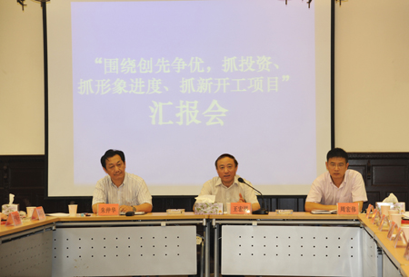 2010年8月17日下午,城投公司召开“围绕创先争优,抓投资、抓形象进度、抓新开工项目”汇报会。分析“中提升”、重点项目存在的困难、问题,研究部署下步工作。会议要求各单位统一思想,会战攻坚,决战决胜,全力以赴完成“中提升”、重点项目建设,城投公司全面吹响 “百日攻坚”号角。会议由城投公司党委书记、董事长王宏祥主持。城投公司本级中层以上干部、子公司党政主要领导参加会议。