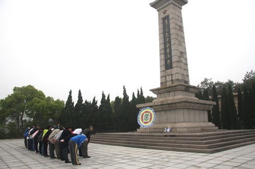 在烈士陵园内,职工代表向革命烈士纪念碑敬献花圈,并集体默哀鞠躬,深刻缅怀革命先烈的丰功伟绩,决心以实际行动继承和发扬革命先烈光荣传统,保持创先争优的良好风气。