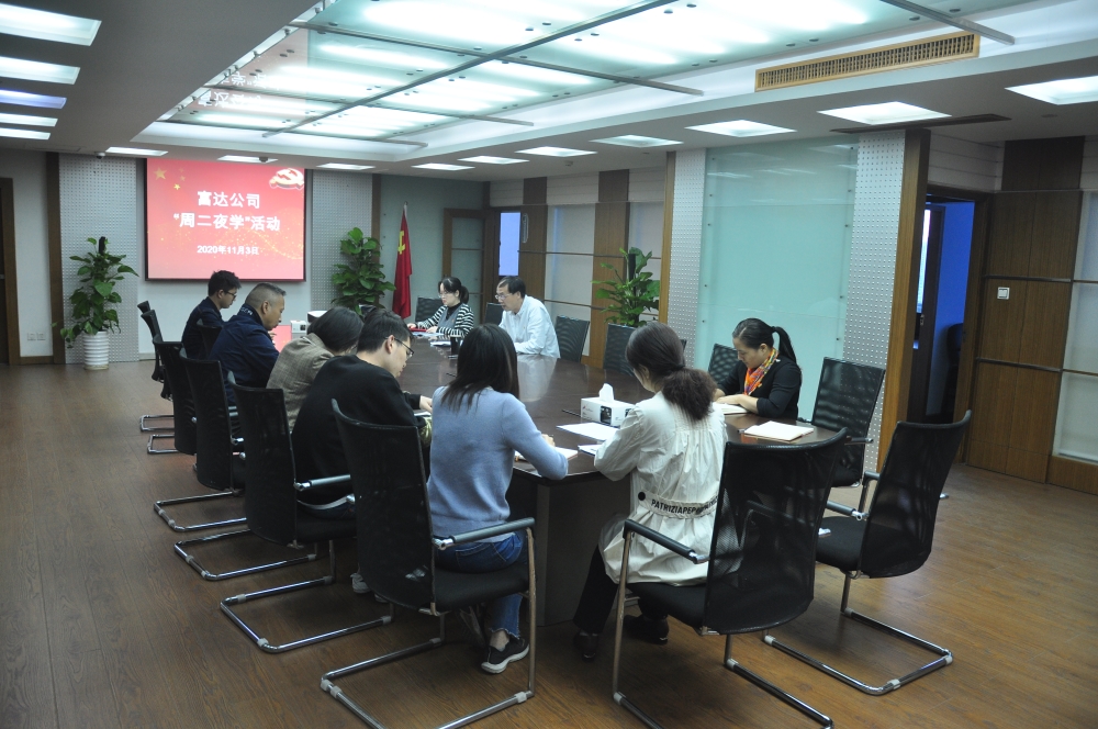 11月3日晚,富达本级及下属广场、科环公司组织开展“周二夜学”,传达党的十九届五中全会精神特别是习近平总书记重要讲话精神。
