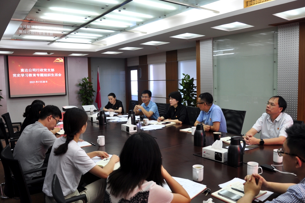 7月28日,富达公司行政党支部召开党史学习教育专题组织生活会,城投公司组织人事部副总经理郑一恺列席指导。
