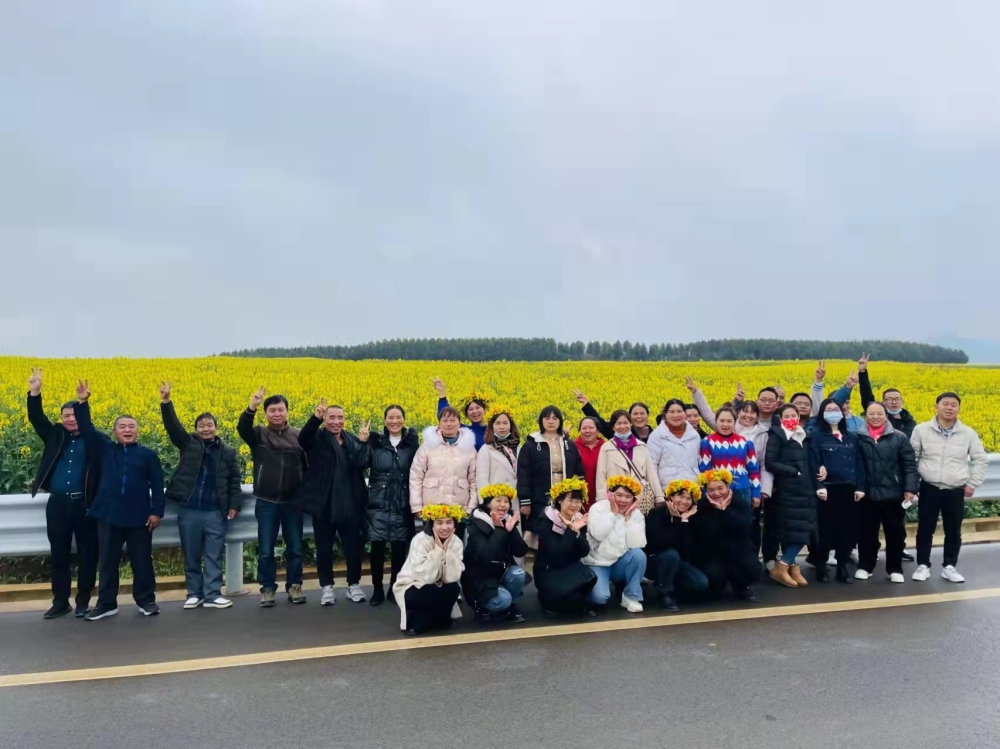 职工们在罗平县多依河风景区体验竹筏漂流,在金鸡峰丛风景区观赏竞相开放的油菜花,在花海中漫步,呼吸清新空气。踏青赏花游活动锻炼了职工们的身体素质,增强了企业工会的团队凝聚力。