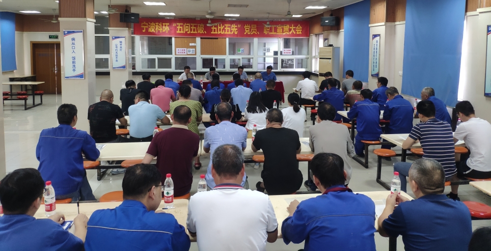 8月18日下午,科环公司召开“五问五破、五比五先”宣贯大会,公司全体在岗党员、职工代表58人到会。