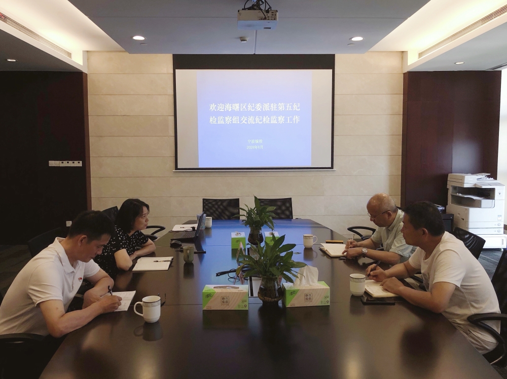 8月25日上午,海曙区纪委派驻第五监察组组长狄立新一行到宁波城投公司交流纪检监察工作。城投公司纪委书记史春红、纪检监察室人员参加。