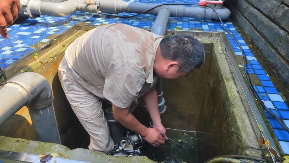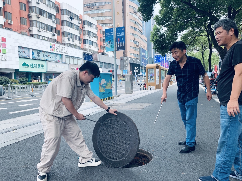 月湖盛园工程人员清理排水沟