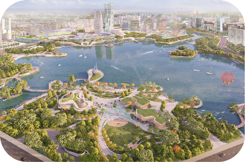 明湖南区工程位于鄞州区东部新城东片区中心区域,总建设面积约30.15公顷㎡。包含湖体开挖,新建岛屿,慢行步道建设,公园硬质铺装,街头运动场地、绿化工程、公共地下停车场、附属建筑、道路(隧道)工程、公园附属配套设施建设及周边环境整治,总投资估算52.39亿元。南区工程一期(已建成),二期分为隧建段、景观段。
