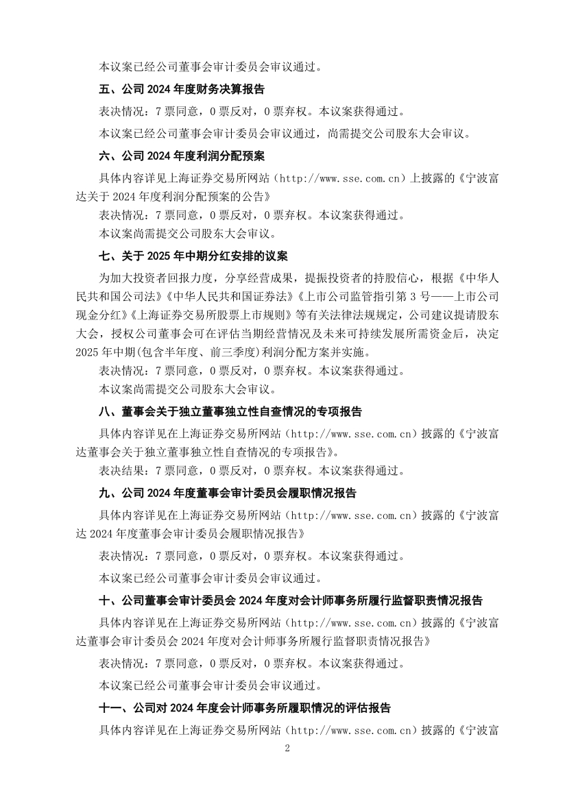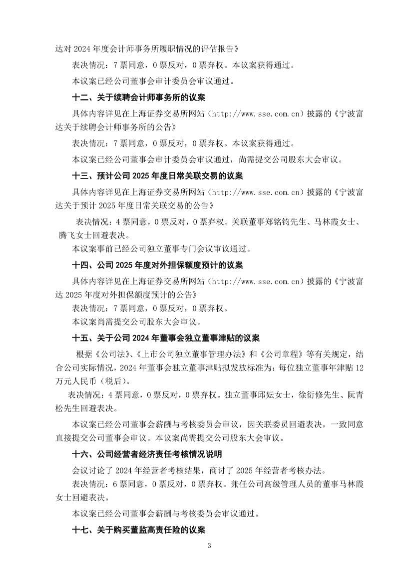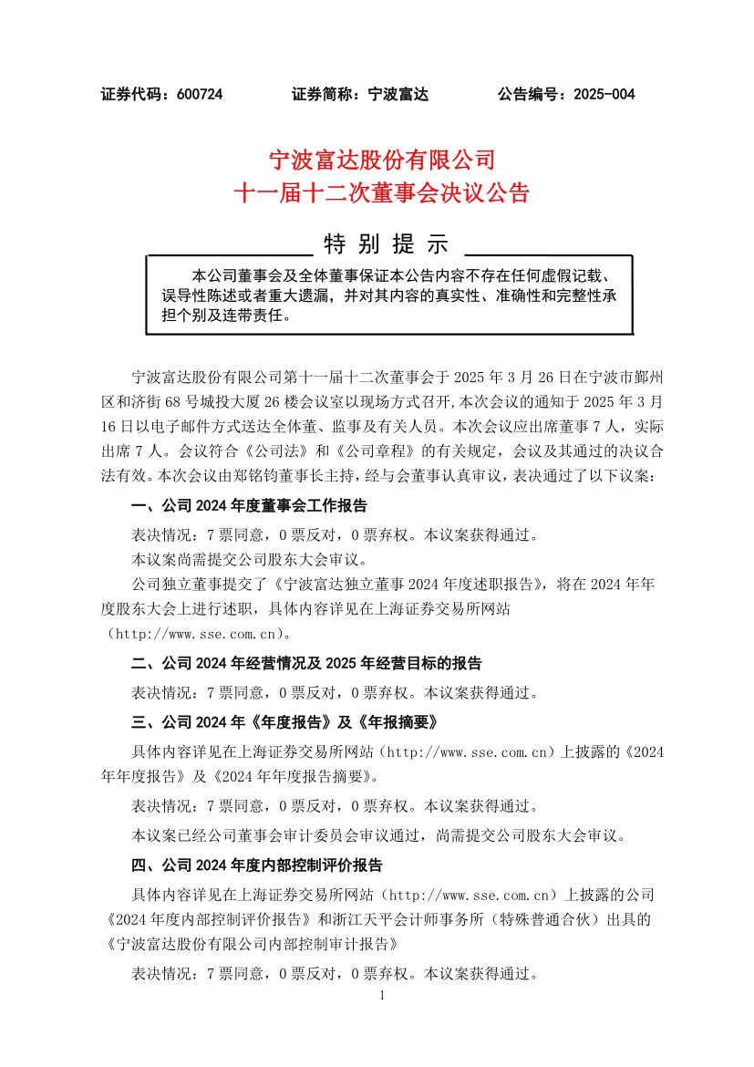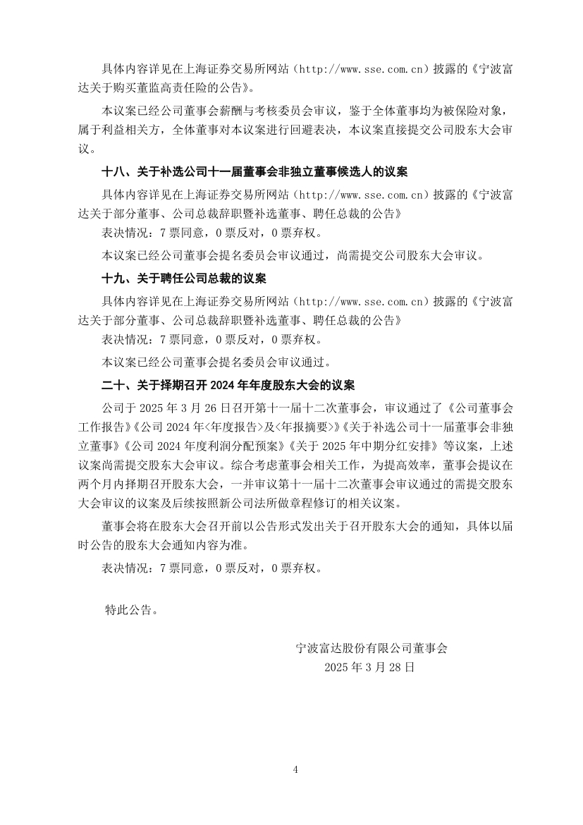 宁波富达股份有限公司十一届十二次董事会决议公告