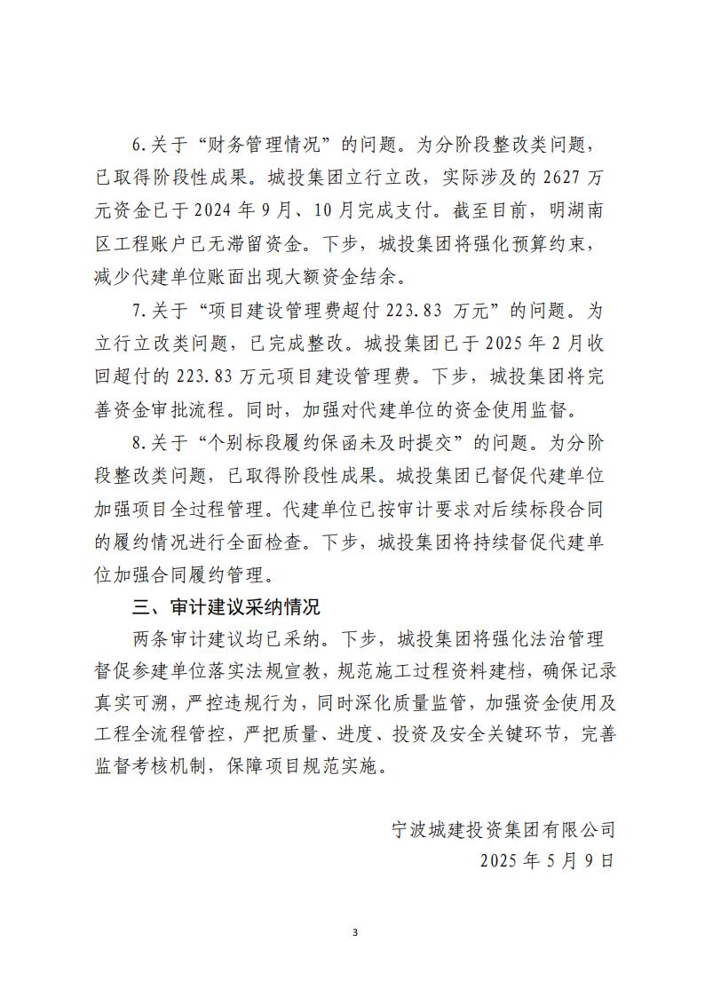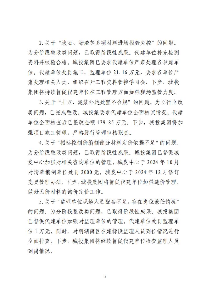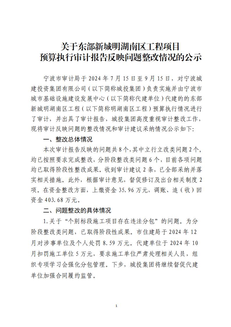 关于东部新城明湖南区工程项目预算执行审计报告反映问题整改情况的公示